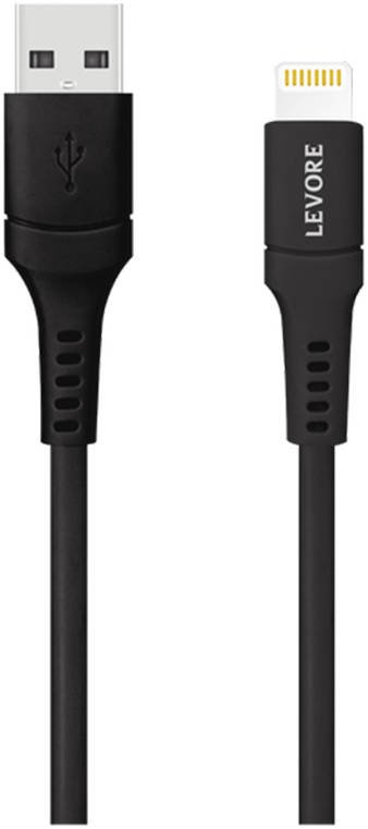 Levore Black 1000mm Lightning to USB cable supports 12W fast charging, data transfer, and is compatible with Apple devices.