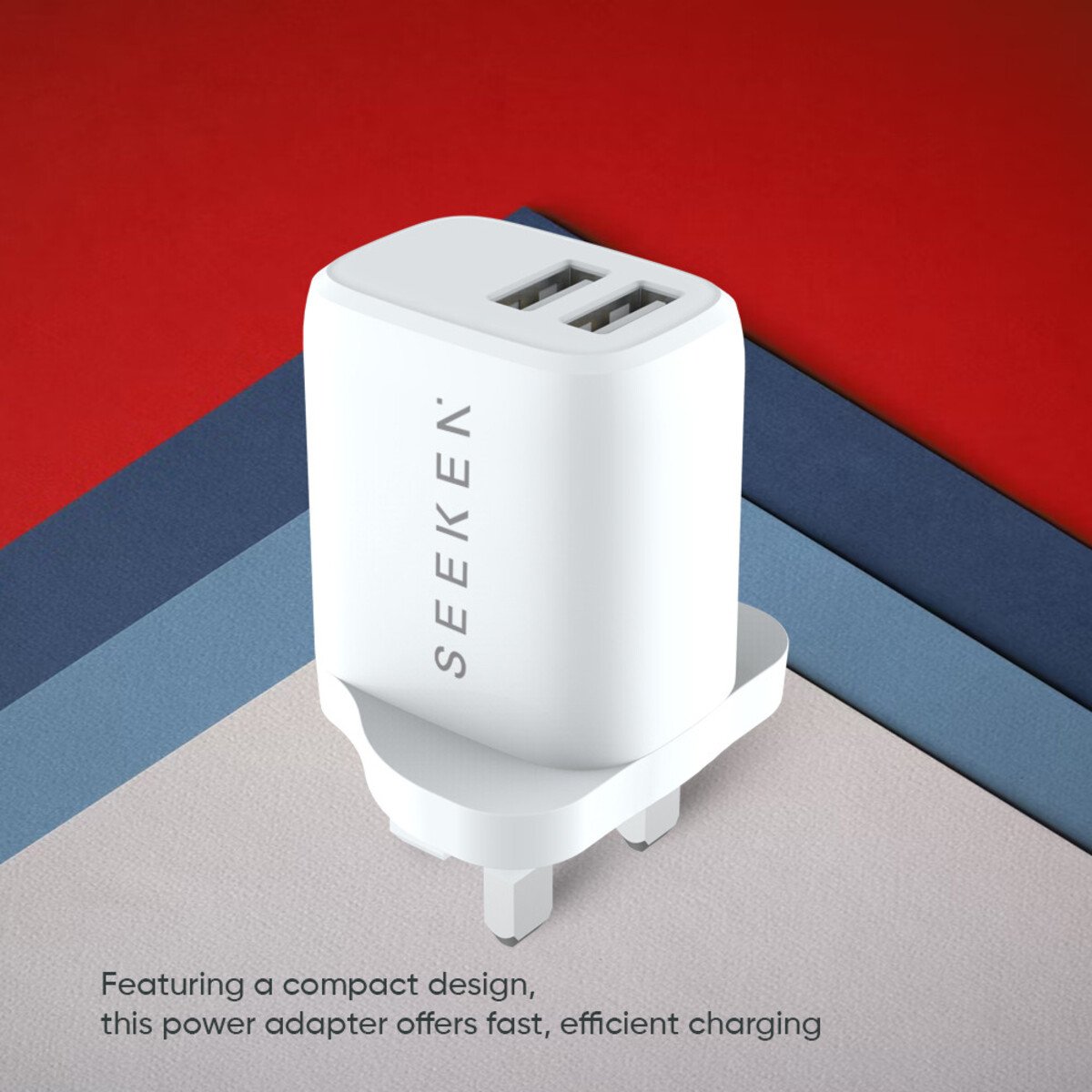 Login"Wall Charger Material: ABS+PC Input: AC 100~240V 50/60 Hz Output 1: DC 12V …1.5A 9V…2.0A 5V…3.0A Output 2: DC 5V …2.4A Port: Dual USB Ports Color: White USB Data Cable Material: TPE Length: 1.0m Output: 5V, 3A Interface: Lighting"
